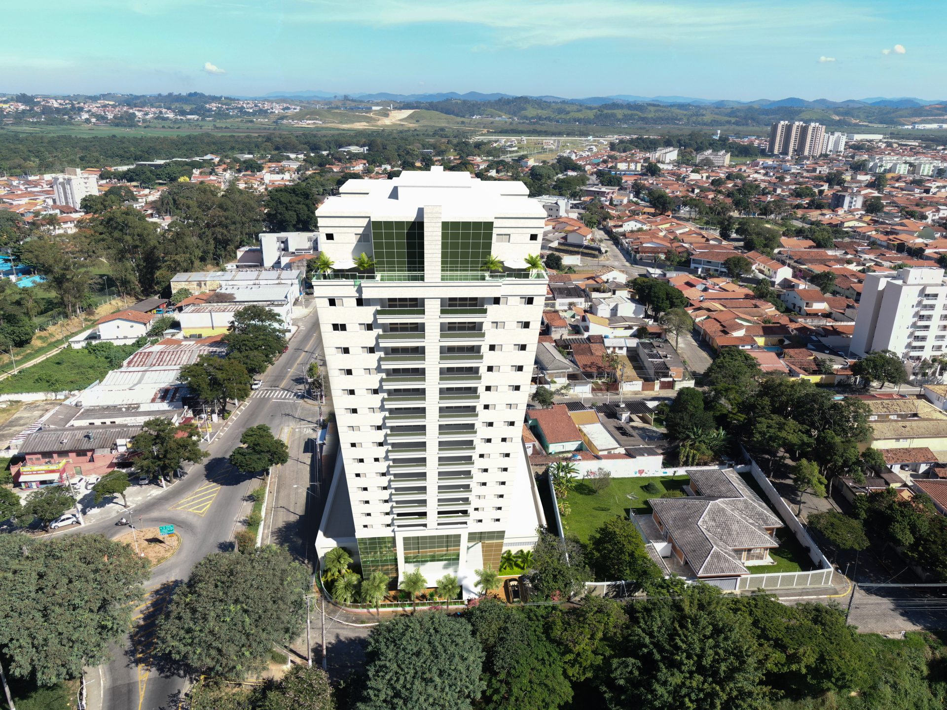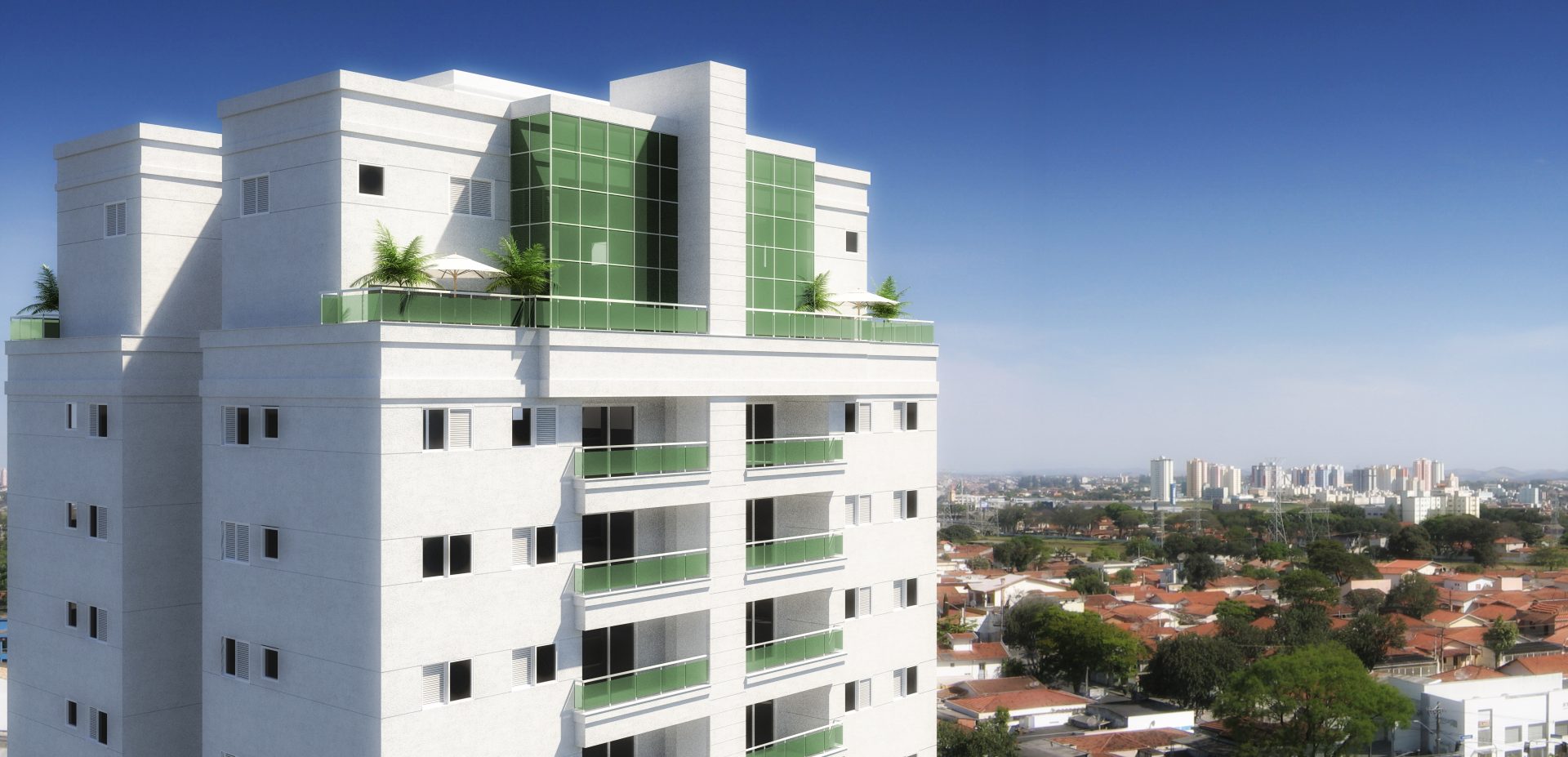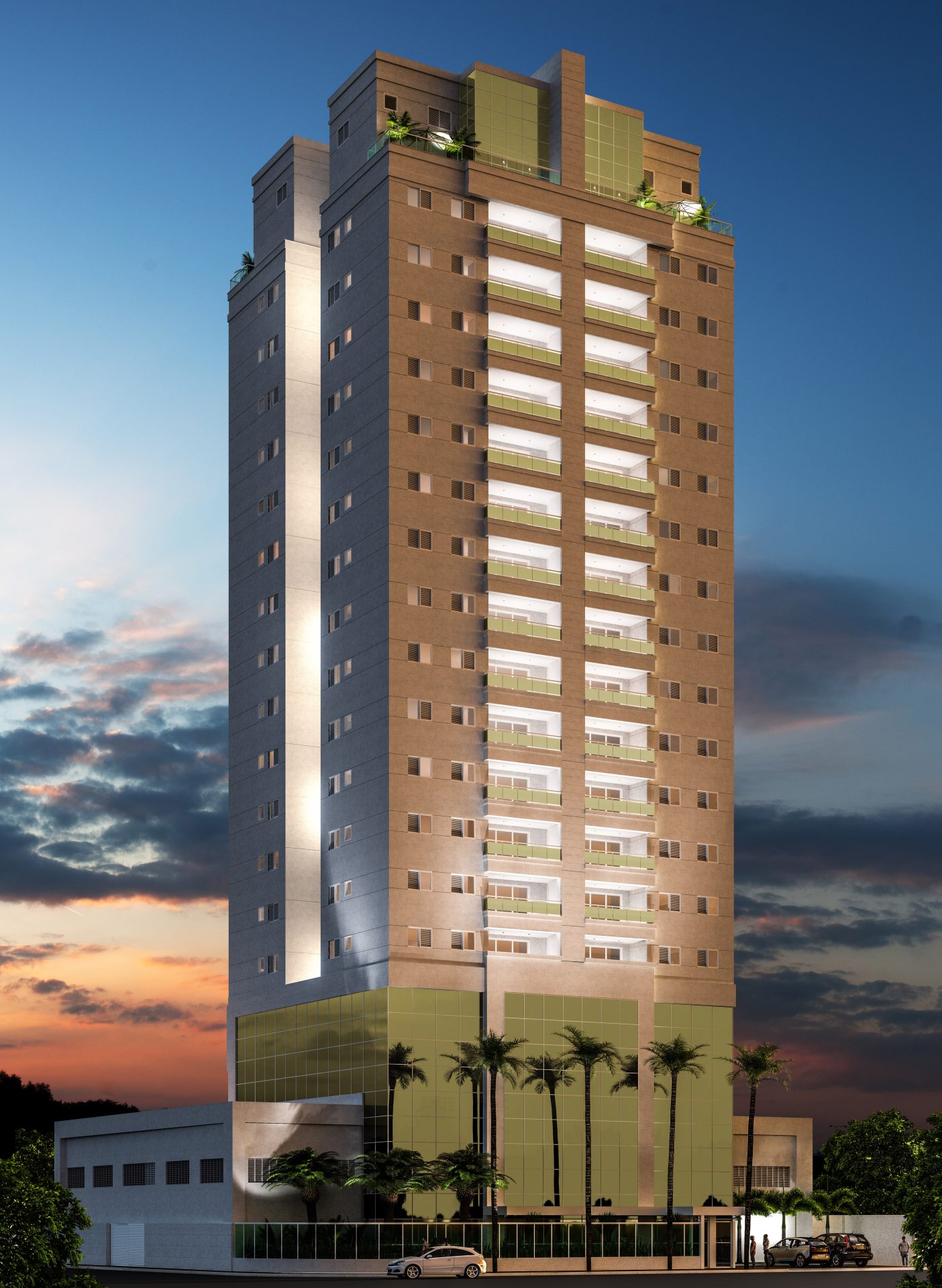 Implantamos uma torre de 20 pavimentos, com 60 apartamentos, dos quais 4 são unidades duplex na cobertura.