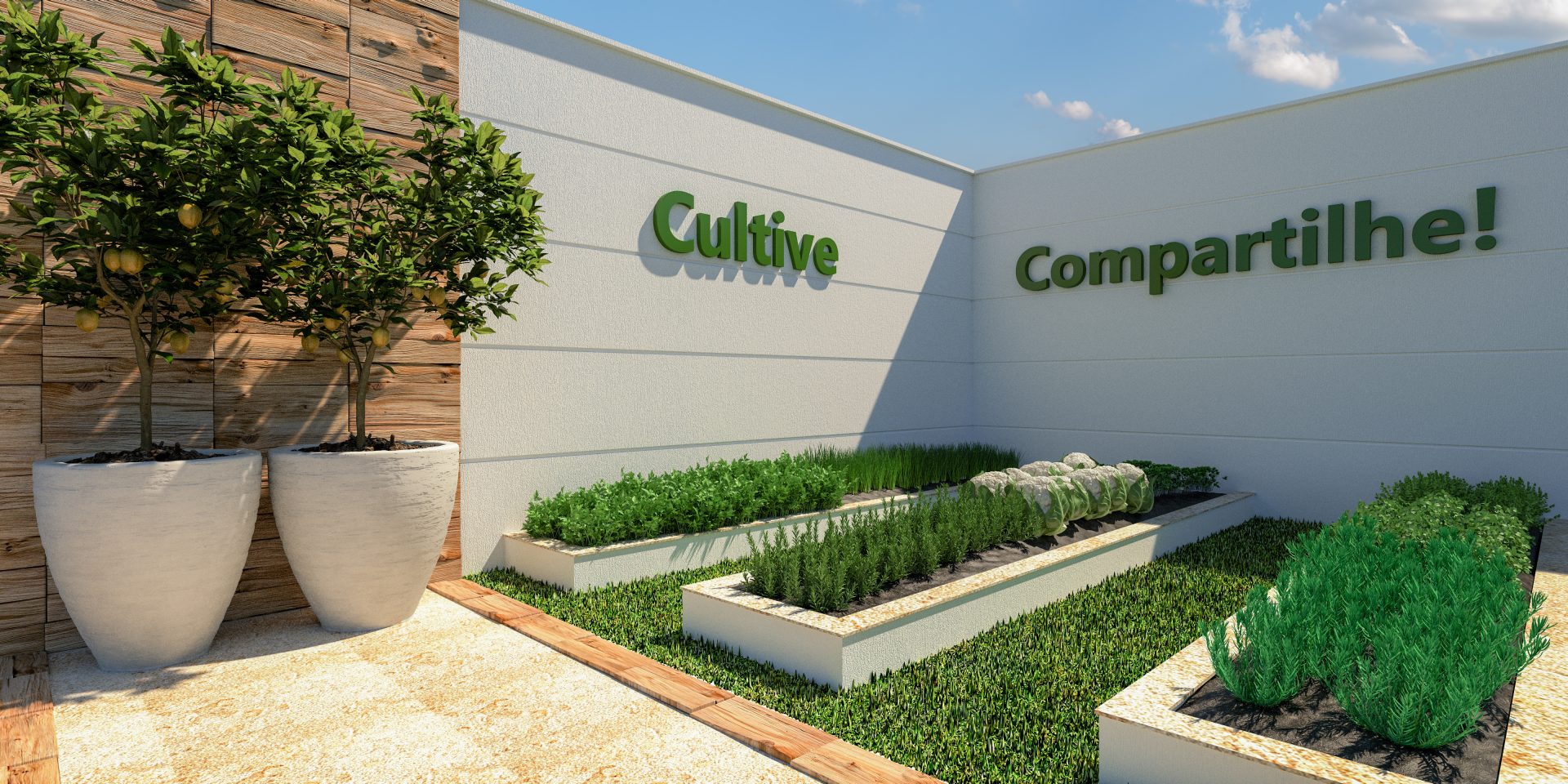 No primeiro andar, encontram-se o salão de festas, copa, petcare, lavanderia compartilhada, horta comunitária, além de 38 vagas de estacionamento.