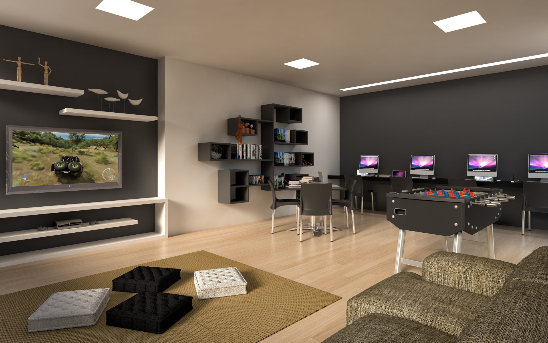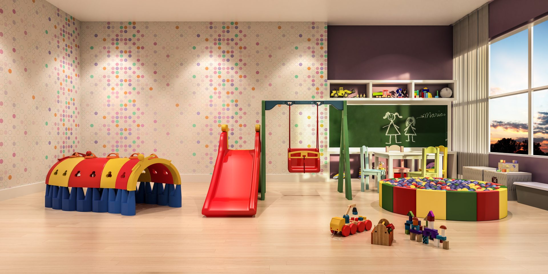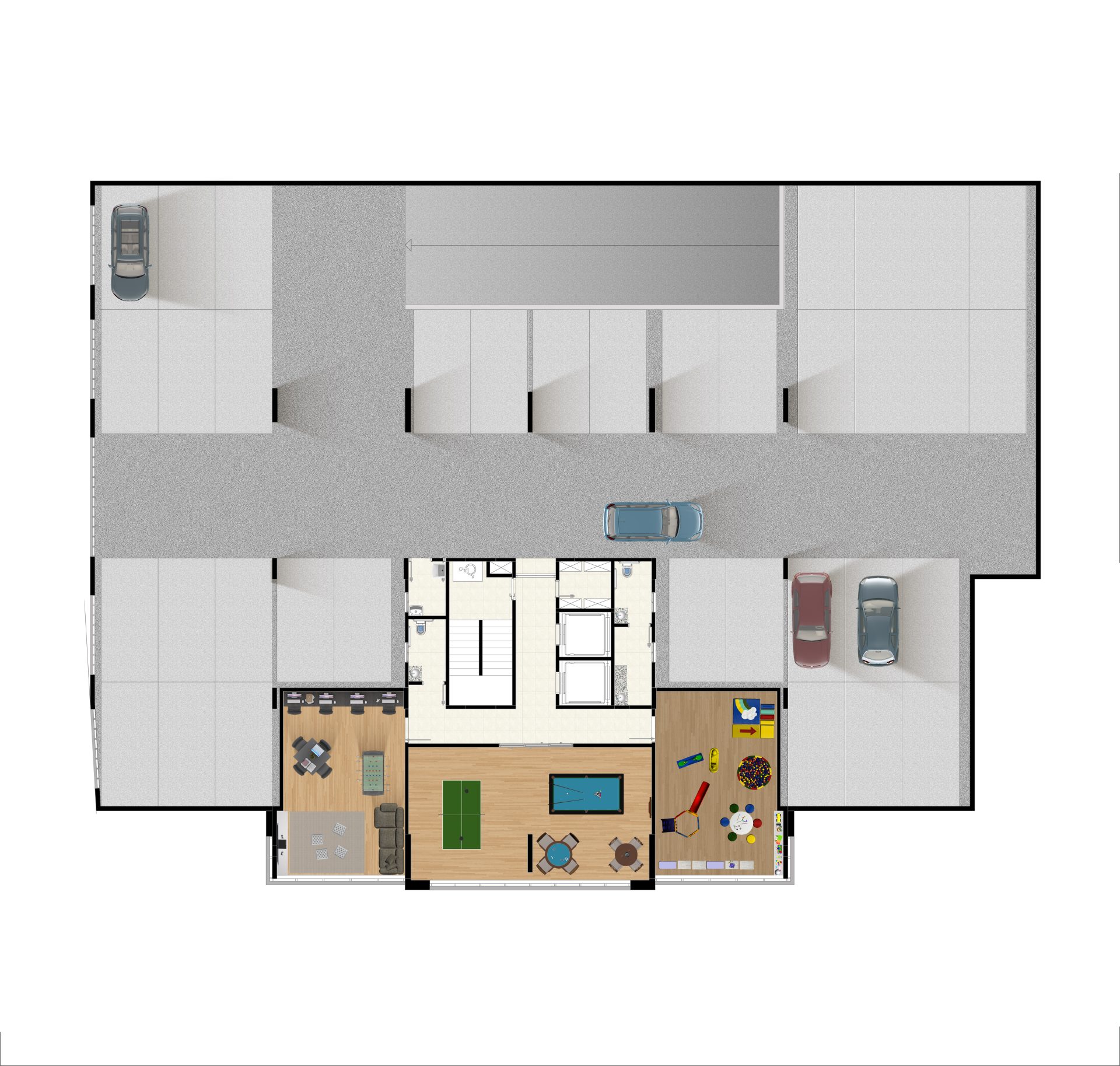 No segundo andar, temos o salão de jogos, espaço teen, espaço kids e mais 36 vagas de estacionamento.